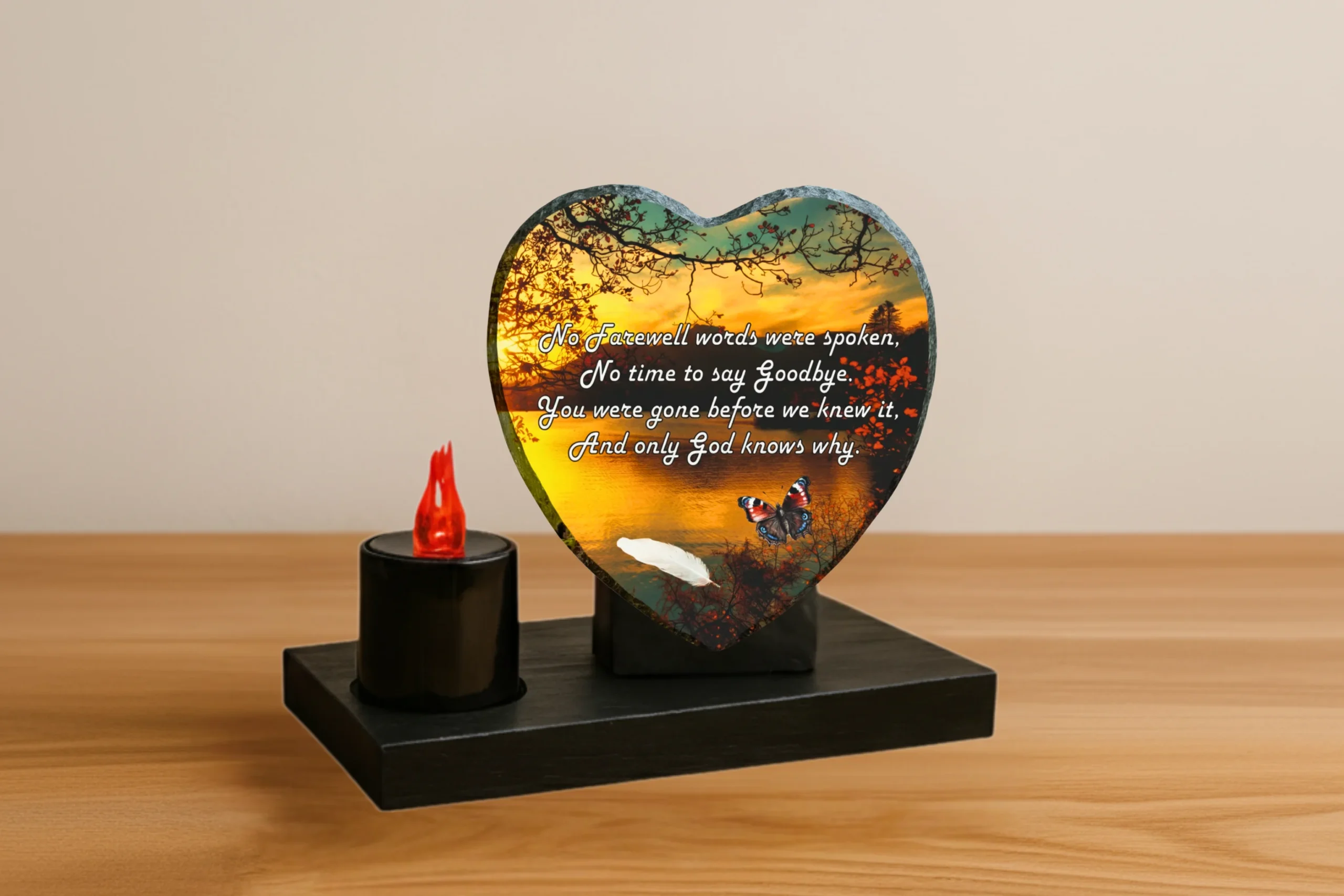 Our memorial plaques are made from real slate with a natural stone uneven texture edge. Slight variations in the size of slate and natural imperfections or pits in the surface, which may be visible in the final print, all give each slate its own distinct and unique features.