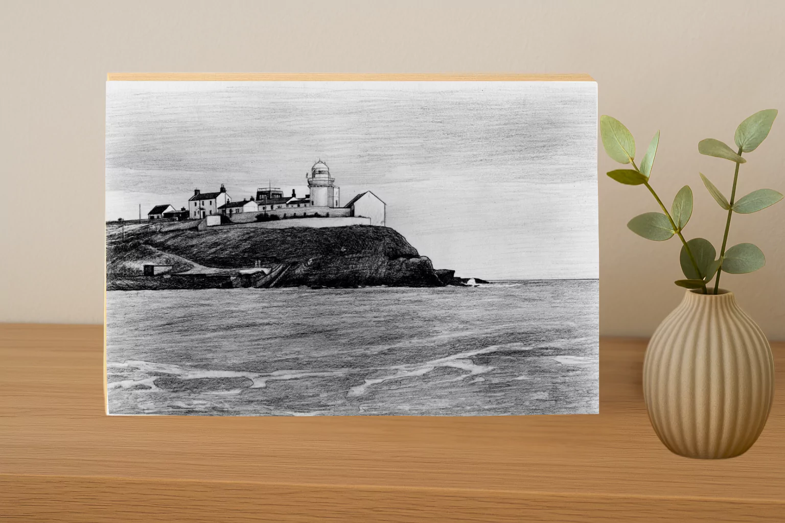 Be-spoke, Pencil Sketched, Hand Drawn Image of “Loop Head Lighthouse” UV printed onto our QD Photo Block, further enhancing the grandeur of this image. A piece of natural beauty on any desk or wall creating an ideal gift or present for a friend or loved one.