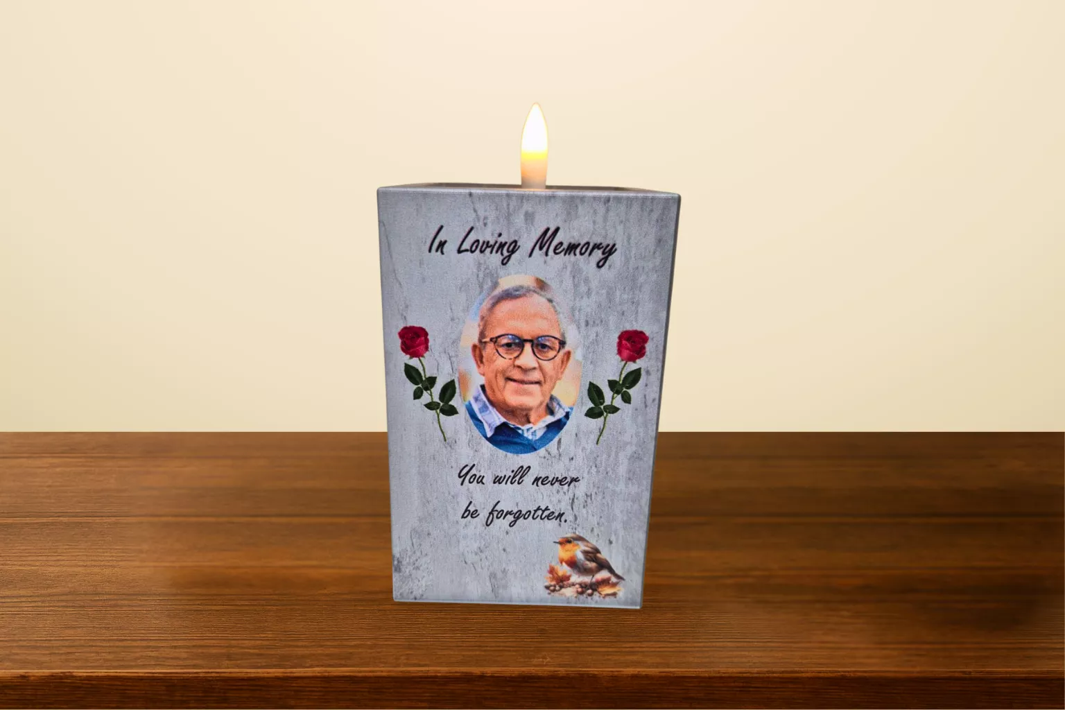 Personalized Concrete colour effect Led square candle with Image, A fitting tribute to a loved one.