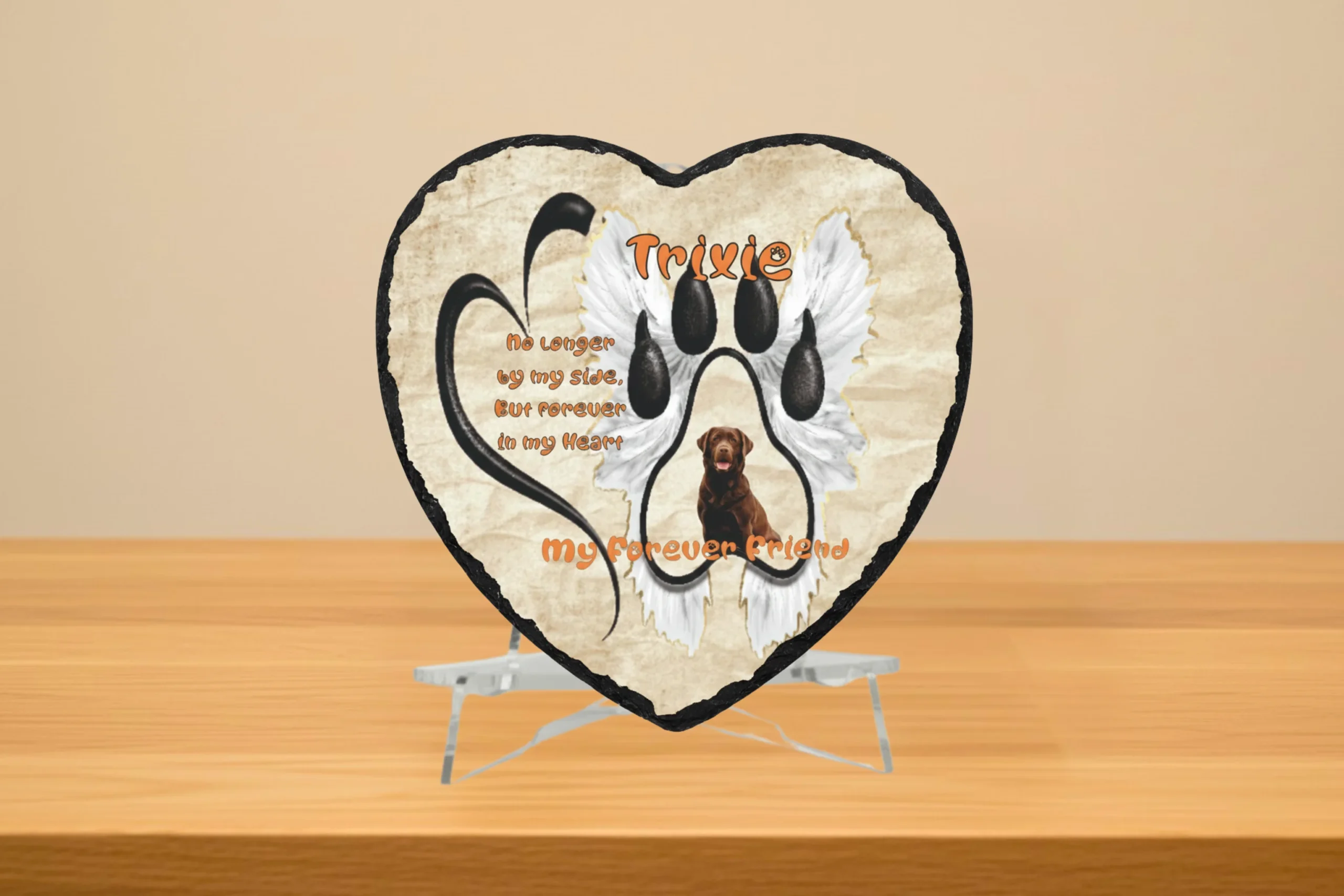 A beautiful mix of memorial plaques with various options to cherish memories of your faithful friend, expressing respect, remembrance, and deep emotions between you and your pet. All designs can be fully personalized to your requirements, including Image, Name & verse. All designs are available in real slate for indoor and outdoor use, or laser-cut 6mm MDF with Acrylic Easel for interior use only.